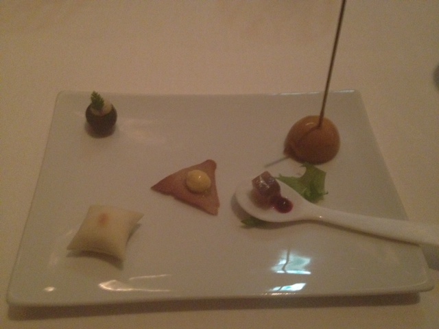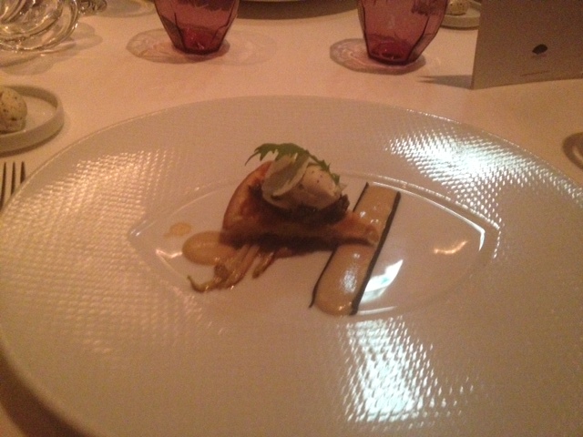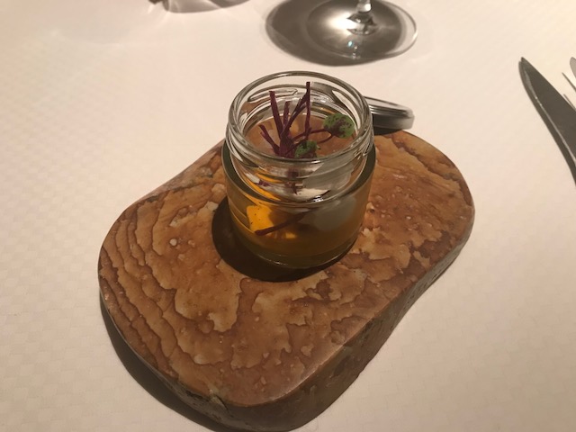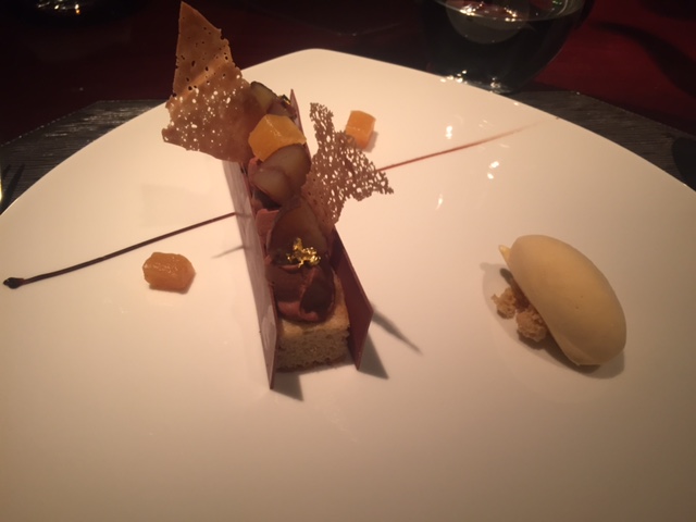フォアグラの下にあるのは柿でこれが凄いおいしかった。