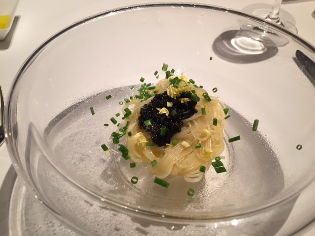 キャビアたっぷりで贅沢な冷製のカペリーニ。