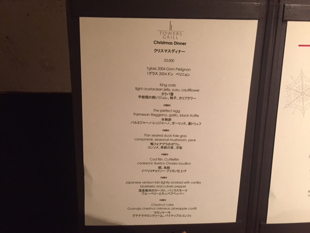 2014年のクリスマスイブに六本木にある東京ミッドタウンと併設されたリッツカールトンホテルの45階にあるレストラン、タワーズグリルでディナーしてきました。