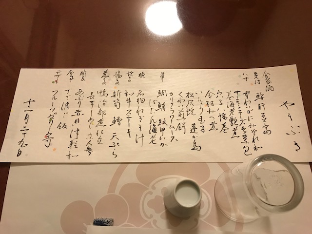 料理は鍋のコースと懐石のコースがあり、僕は懐石コースの胡蝶を頂きました。
