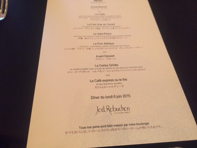 ロブションのディナーは3つあって今回は一番安いコースです。