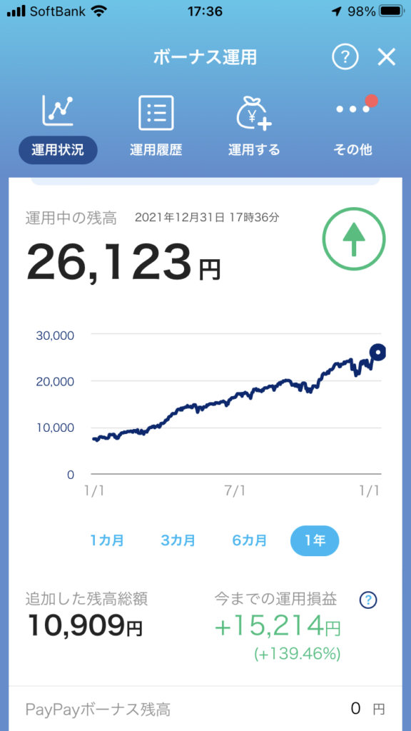 1年間で6,183円ボーナスを追加して残高は26,123円になりました。
