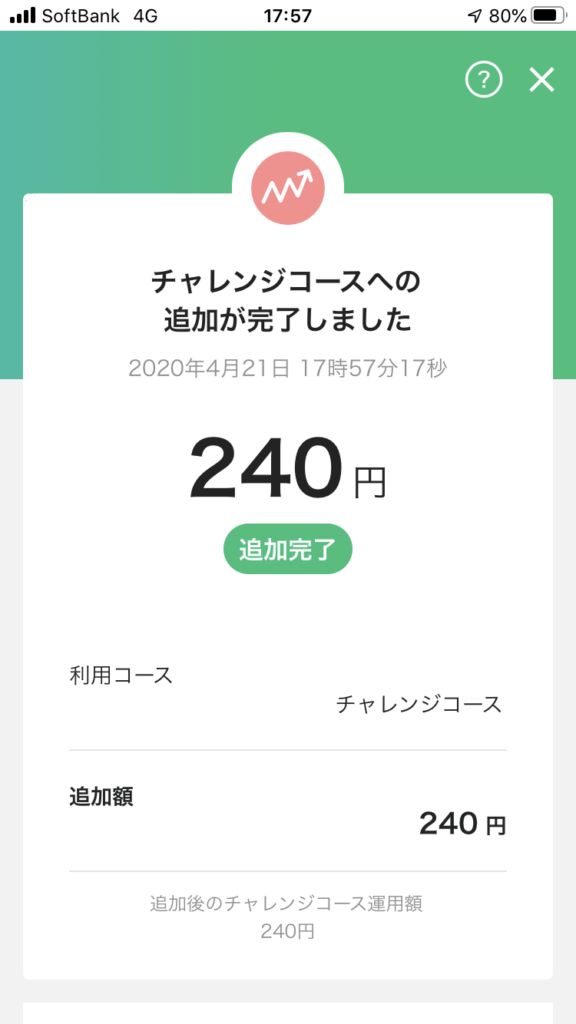 運用できるのはボーナス(後日還元されるやつ)だけなので大した金額はぶっこめないですが、とりあえず試しに保有していた240円をぶちこんでみた。