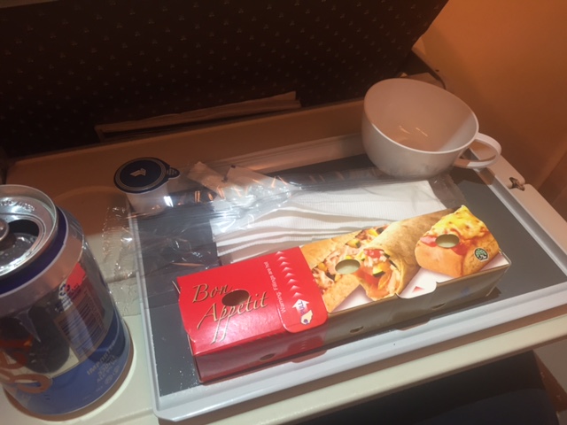 羽田を離陸してすぐに提供されたのはカレーパン1個。