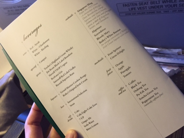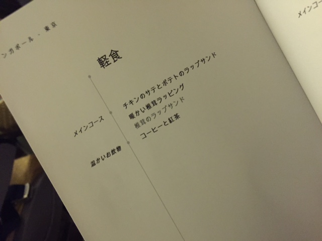 東京からシンガポールへのフライトで食べた機内食を紹介する