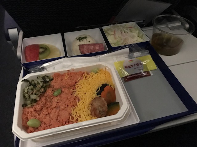 機内食はジャパニーズとインターナショナルから選べて、インターナショナルをチョイスしました。