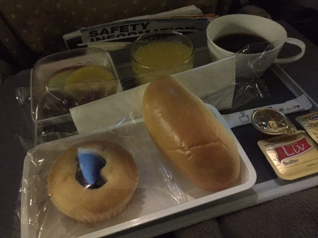 チャンギ空港を22時半に離陸する便では朝食が無かった。